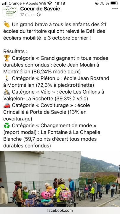 Sinon bonne nouvelle : notre école remporte le prix éco-mobilité catégorie VELO !